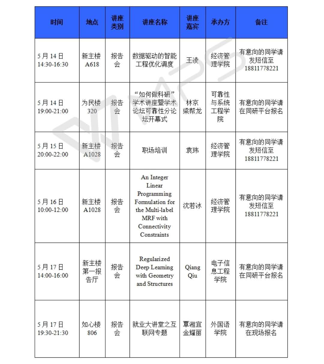 研究生人文与科学素养系列讲座预告(5.14-5.20)